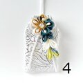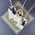 素敵なお守り袋が2つ届きました。 絞りの生地の色合いと大輪の花がとても華やかでキュートです。 白梅のものは、奥ゆかしさと気品を感じました。 どちらも大変気に入りました。大切に使わせていただきます♪