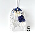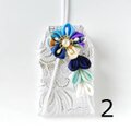素敵なお守り袋をありがとうございました。オーダーで作っていただき、サイズもぴったりでした。 今回は白いお守り袋が欲しいと思って選んだのですが、生地の輝きと純白の花がとても美しいです。高貴さを感じました☆