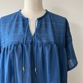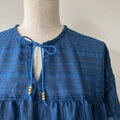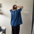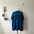 薄手の透け感のあるコットン生地を使用しています。深いブルーが見た目にも涼しく、下に一枚タンクトップなどを着てお出かけできる一枚です。