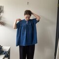 ふんわりやわらかいブルーストライプの生地でトップスを作りました。