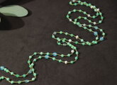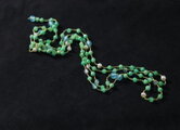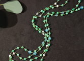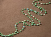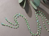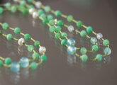 アネモネカラー・天然石と絹のネックレスパールの位置によって、長さはもちろんトップの形を変えられるのがユニークで変化が楽しめて嬉しいです。 以前ネックレスを落としてしまったことがあるので、被り式のネックレスは安心して身につけられて助かります。 ネック部分やタッセルがシルクで、汗ばむ季節にも肌あたりが柔らかそうで嬉しいです。トップに合わせたタッセルの色合いも好きです。 素敵な作品をありがとうございました!