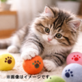 猫ちゃんが思わず追いかけたくなる、肉球模様がかわいい羊毛フェルトボールです。
