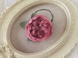 花綻んだカップ咲き一輪のシンプルなデザインで、少し濃いめのピンクのコサージュ。