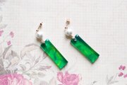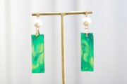 緑のマーブル模様が爽やかで、夏の緑のように鮮烈なピアス。