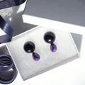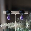 2WAY★黒水晶とチャロアイトのスタッドピアス・イヤリング可 ~山葡萄