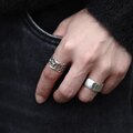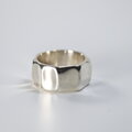 不規則な多角形にすることで、ボリュームの割に馴染みやすいリングになっています。