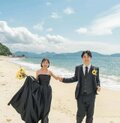 実例写真!カラードレス ブラック ベアトップ プリーツスカート オーバースカート 編み上げ 前撮り