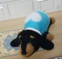 - デザイン: 羊毛フェルト製の犬 少しぷっくりしています。