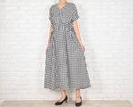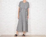 ふわりと心地よい、コットン素材のチェック柄Vネックワンピース ギンガムチェック <ブラック>