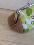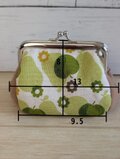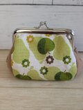 爽やかなグリーンアップルとラ・フランスの柄が可愛らしいぷっくりとしたがま口です。