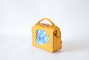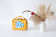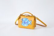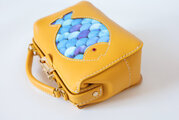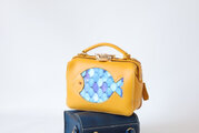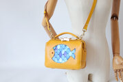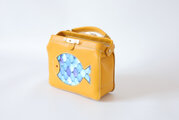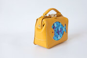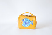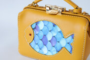 柄の布をヌバック牛革にはめ込んで、魚が泳いでいる感じがします。