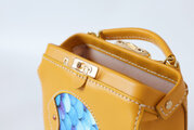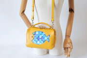 【深海魚】がま口バッグ 本革手作りのレザーショルダーバッグ 総手縫い 手持ち 肩掛け 2WAY 鞄 大のコピー
