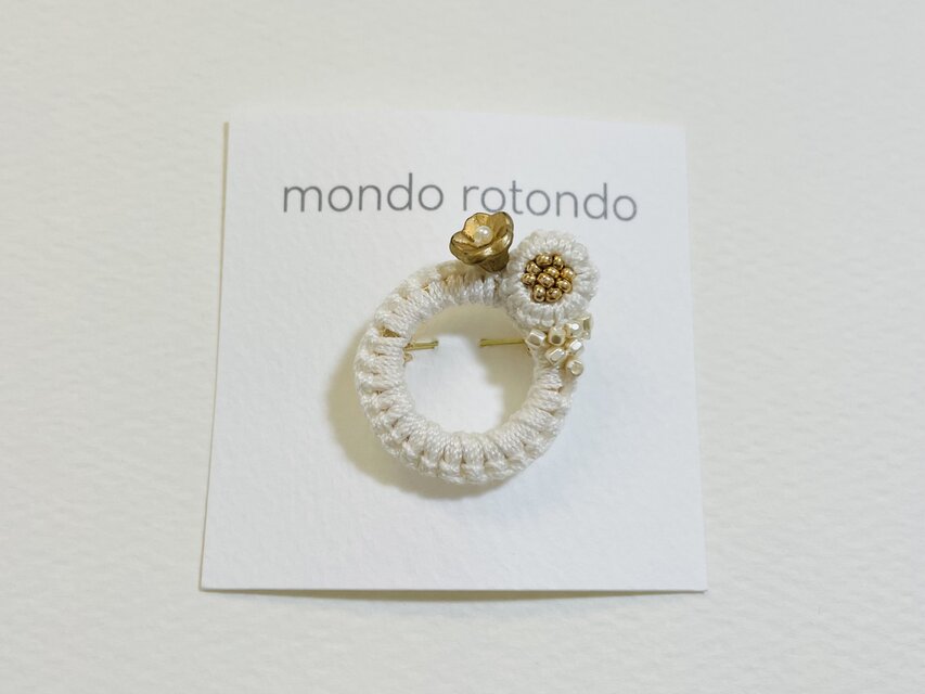 【糸とガラス】ちいさな花のブローチ ホワイト系 b007