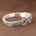 このバングルは、古代から伝わる伝説の鳥、鳳凰の美しさと力強さを表現しています。シルバーの輝きが、鳳凰の羽の細やかなディテールを際立たせ、見る者の心を引きつけます。職人の手によって丁寧に彫られた模様は、一つ一つが異なる表情を持ち、身につけるたびに違った魅力を感じることができます。