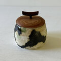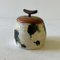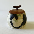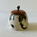 小壺型・銀彩・蓋物なんて可愛らしいフタモノなのでしょう。ひとつひとつ違っていて選ぶのも楽しかったです。 色味もカタチも木と器のコラボも最高なので、ちっちゃいけれどテーブルの主役に大抜てき!(他は何も置かない様にガンバります。) 個包装のあめちゃん10個入りました。 素敵なフタモノに、出会えて良かった! ありがとうございました。