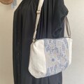 点と線模様製作所さんの生地を使用して、繊細で美しい刺繍がポイントのショルダーバッグをお作りしました♪