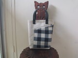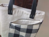 裏面はリネンのブロックチェック生地でファスナー付きのポケットを付けました。