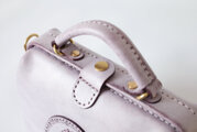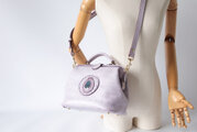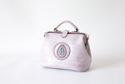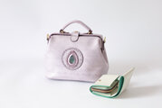 こちらはラブラドライトの天然石を用いた本革バッグです。