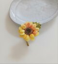 ビタミンカラーに染めたミニひまわりをブローチに仕上げました。