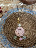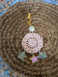 レース編みのまんまるモチーフとお星さまビーズのストラップです。