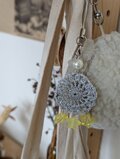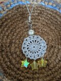 レース編みのまんまるモチーフとお星さまビーズのストラップです。