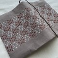 複雑な刺し子模様が綺麗に並んでいるのをじっと眺めたくなるような作品です。