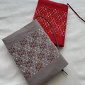 刺し子ブックカバー 文庫本サイズ/つづき山形/グレージュ プレゼント 刺繍 シンプル 上品 洗える 誕生日