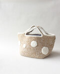 麻ひもと真っ白なレース状ヤーンを引き揃えて編んだマルシェバッグ