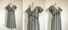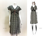 胸元を切り替え、レースを付けてゴムを縫い付けてギャザーを入れているワンピースとなります。