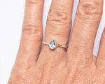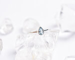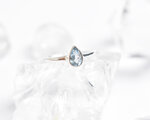 澄みきった空のようなブルーが印象的な、ドロップ型のブルートパーズを一粒あしらったリング。