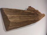 壁掛け表面はへぎ加工で凸凹した手触りが個性的で樹形を活かしながら雲を意識して制作し、内側には溝とポケットを彫りディスプレイしやすいように工夫しました。