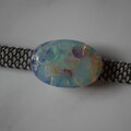 天然石オパールとクラゲ、金箔の帯留め【一点物】
