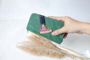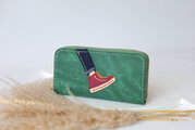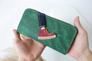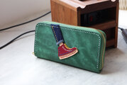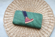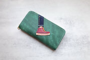 この長財布には、本革とデニム素材を組み合わせた、歩き出しそうな脚の立体モチーフを手縫いで仕立てました。遊び心のあるデザインが、日々の暮らしにちょっとした元気を与えてくれます。