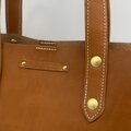 ハンドルは、表裏ともに同素材の牛革を使用した丈夫な両面貼り仕立て。