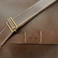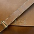 ショルダーストラップは幅約3cmの牛革製で、肩への負担を軽減しながらしっかりとした安定感を実現。
