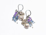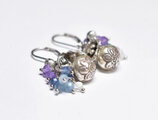鈴とお花カレンシルバー、たわわなアメジスト&アクアマリン&ムーンストーン、インドシルバー鈴を繋いだピアスです。