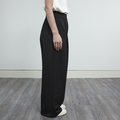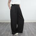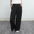 【洗濯可、通年着れる】ワンタック とろみ素材のワイドパンツ 後ろウエストゴム 【2サイズ】 ブラック 0726BK