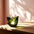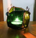 ・作品は新緑の木の葉をイメージして制作したステンドグラスのキャンドルホルダーです。
