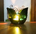 ・ 新緑の木の葉 ステンドグラス キャンドル ホルダー ギフト