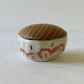 小壺型・銀彩・蓋物なんて可愛らしいフタモノなのでしょう。ひとつひとつ違っていて選ぶのも楽しかったです。 色味もカタチも木と器のコラボも最高なので、ちっちゃいけれどテーブルの主役に大抜てき!(他は何も置かない様にガンバります。) 個包装のあめちゃん10個入りました。 素敵なフタモノに、出会えて良かった! ありがとうございました。