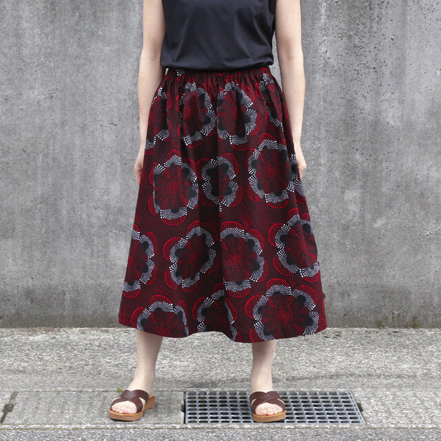 【受注制作】アフリカ布のギャザースカート( フラワー )アフリカンプリント アフリカンファブリック