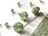 鬼灯の様な黄緑とクリアカラーの2トーンカラービーズを3連にしてでかんざしを制作しました。