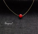 s159-160【天然石 レッドカラージェード】チェーンの色と長さ選べる 天然石のひとつぶネックレス