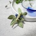 ちっちゃなグリーンから、熟して食べ頃のブルーベリー色までの実5粒が枝に実っているようなイメージで布花のブローチを仕立てました。