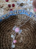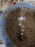 かわいいピンクカラーのキャンディビーズの鈴ストラップです。