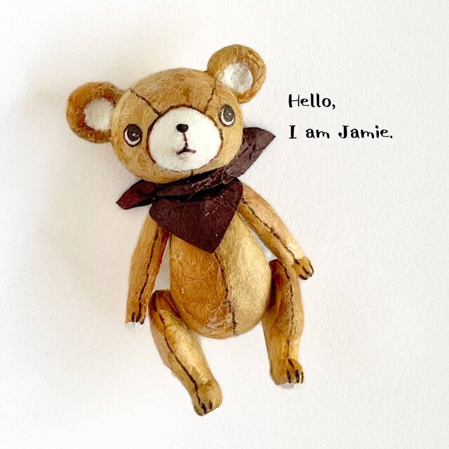 ちいさな和紙のテディベア、「Jamie(ジェミー)」が主役のミニチュア創作人形です。