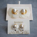 ※ こちらのピアス/イヤリングは、丈夫に石、下部にスパンコールというデザイン上、テーブル等に置くと転がってしまうことがあります。