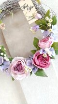 ☆クレイフラワー作品(バスケットいっぱいの夏)☆本日、自然な感じでイメージ通りの愛らしいバラのリースが届きました、さっそく壁に飾らしていただきます。 T.S