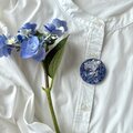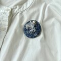 とてもとても素敵なブローチです。青、紺色系の服につけようと購入しましたが、ブローチに使われている数種類の青が美しく馴染みます。そして少し神秘的。 物語のようなブローチの名前にも引き込まれました。 素敵なブローチをありがとうございました。