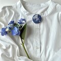 "hoshini negaiwo" 星に願いを 草木染め糸と絹糸のブルーの丸型刺繍ブローチ